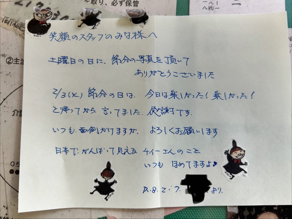 先日あるご利用者様のご家族様からお手紙をいただきました。