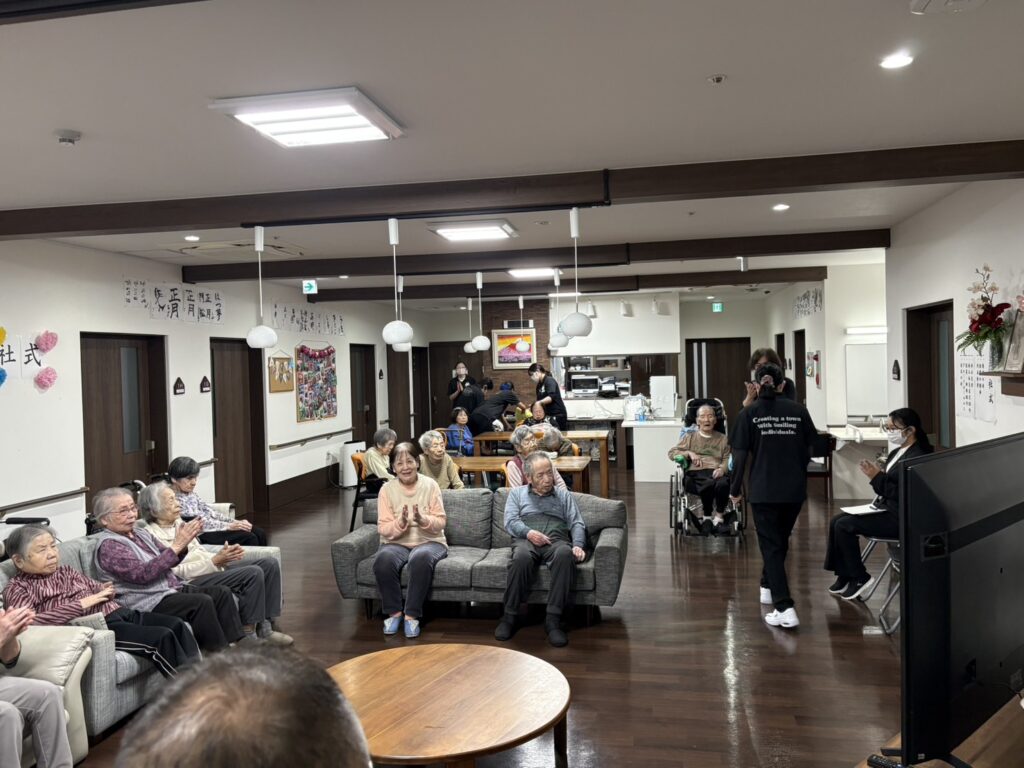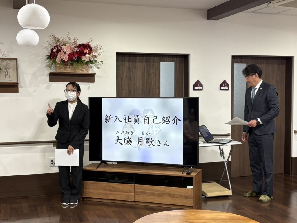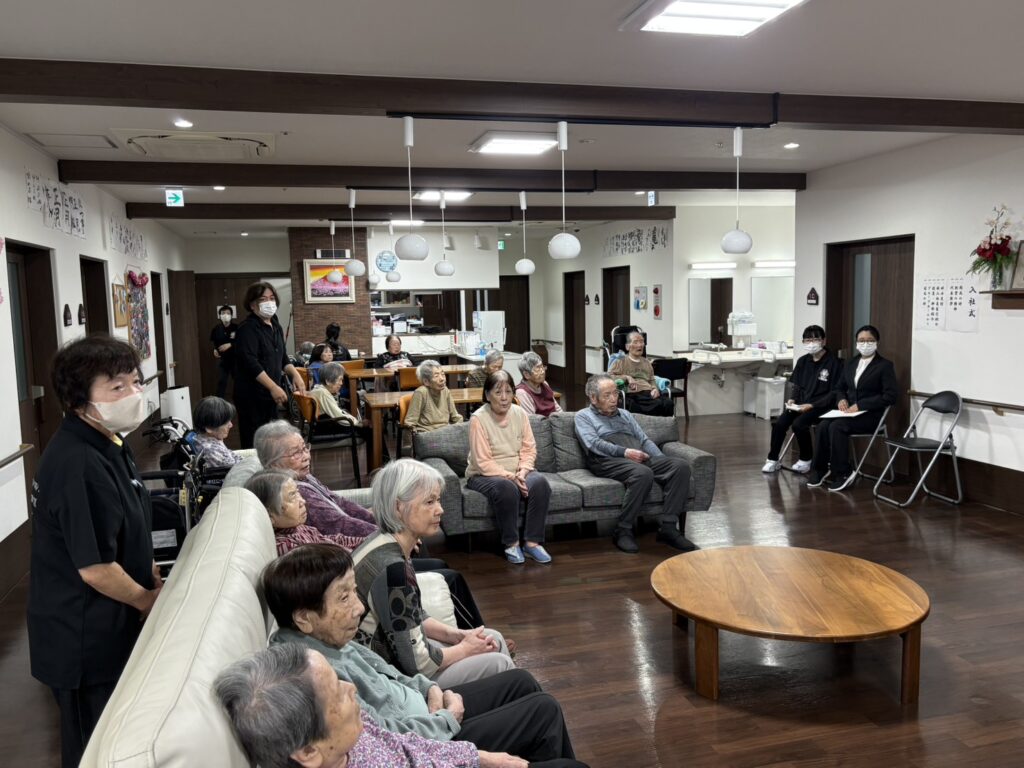 今回の入社式には、グループホームのご入居者の皆様にもご参加いただきました。 スタッフだけでなく、普段から共に過ごす皆様に見守られながらの式となり、会場は終始温かい拍手と笑顔に包まれました。