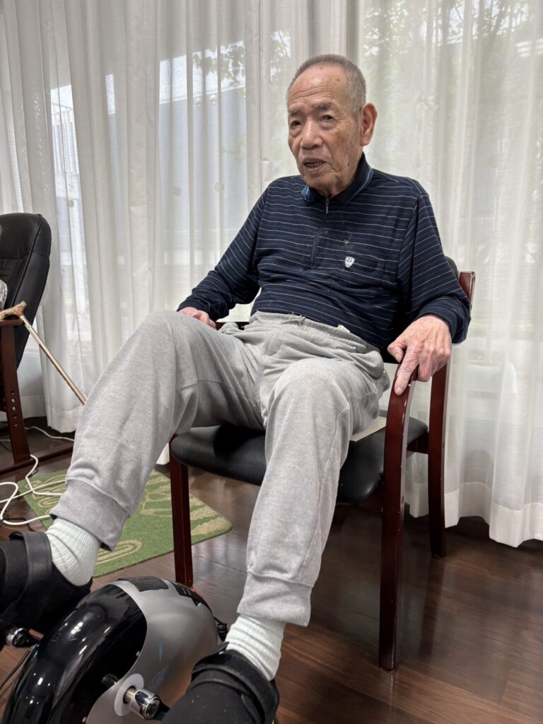 施設内でも色々な事に取り組んで頂いていますが、今後長距離の外出など行える様に、筋力トレーニングなど色々な事に取り組んでいきます。